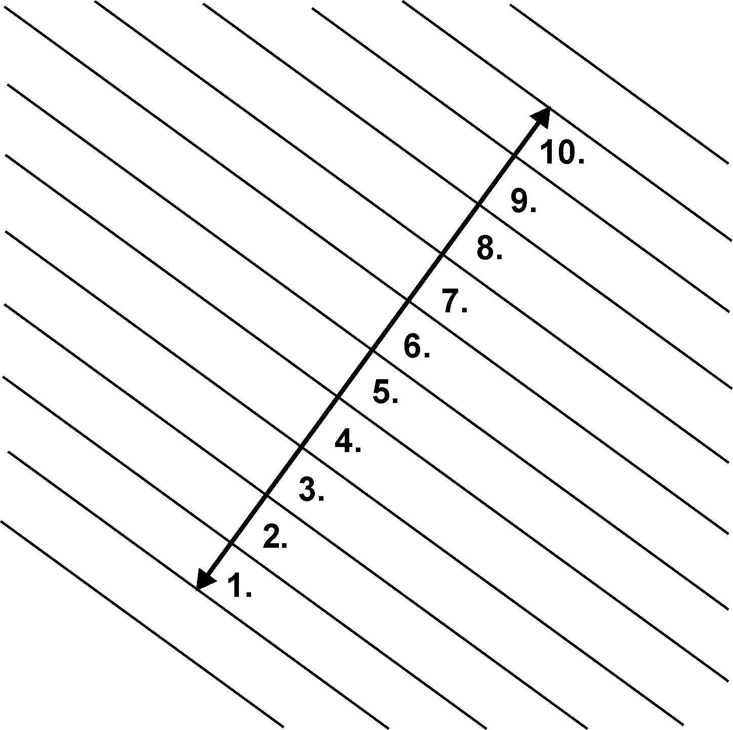Hay que dividir el suelo en zonas de aproximadamente 5-10 m². Las medidas de humedad se deben realizar en la intersección de las líneas, para comprobar si existe alguna desviación de humedad. La humedad residual de las zonas más elevadas se medirá con un método de medición destructivo.