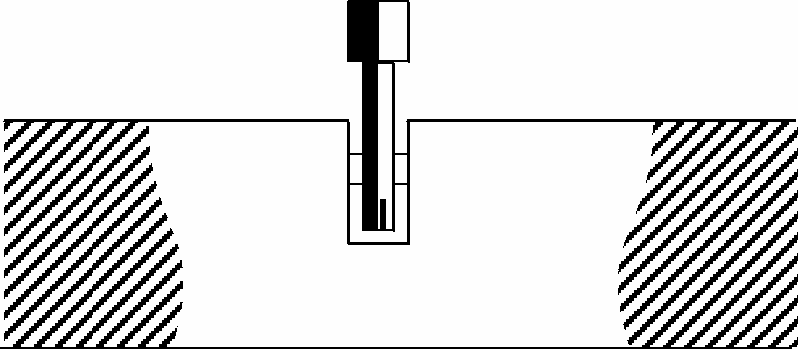 El contenido de humedad se determina en una serie de orificios perforados. Los orificios se perforan a una profundidad de aprox. ½ x el grosor de la construcción del suelo y con un diámetro que permite el paso libre del sensor del instrumento de medición. Aspire con cuidado el orificio para eliminar la suciedad y el polvo. Coloque el medidor de humedad con cierre hermético en el orificio perforado, ver Fig. 6.