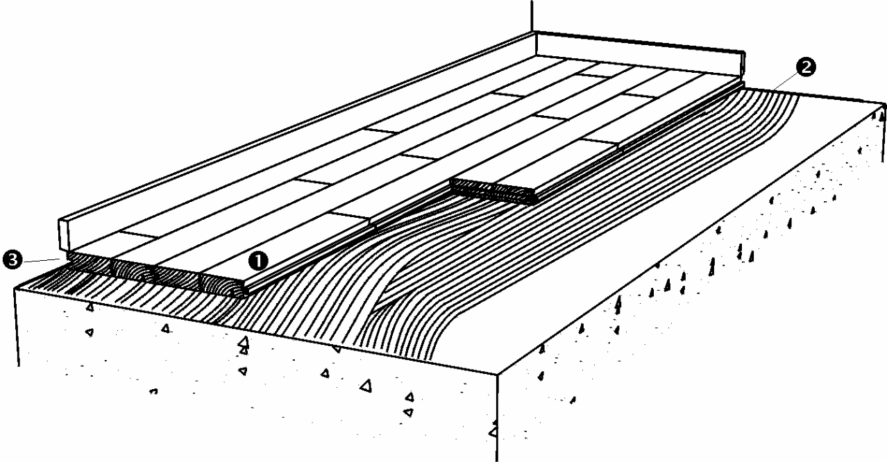 La superficie del subsuelo debe ser suave y limpia, es decir que cualquier residuo líquido que pueda haber debe eliminarse, de lo contrario, la capacidad de adhesión del pegamento no puede garantizarse. La superficie que contenga cualquier residuo puede afectar a la elasticidad del pegamento necesaria para soportar los movimientos naturales de la madera a lo largo del año.