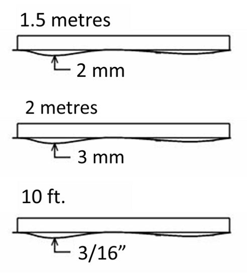 Las desviaciones se miden como espacios debajo de la regla recta. La superficie debe ser suave. Cualquier imperfección debe corregirse lijando o utilizando un componente de auto nivelación.ooth. Any irregularities must be corrected by grinding or by using a self levelling compound.